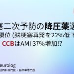 脳梗塞二次予防の降圧薬選択 —ARB優位の示唆 (再発22%低下)/CCBはAMI37%増加