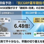 - 対象患者のイメージ: 月の片頭痛日数が4日以上あり、既に1〜2剤の経口予防薬を試したけれど効果が不十分、という患者さんには、次の一手として抗CGRP関連薬を早期に提案することを積極的に検討すべきでしょう。