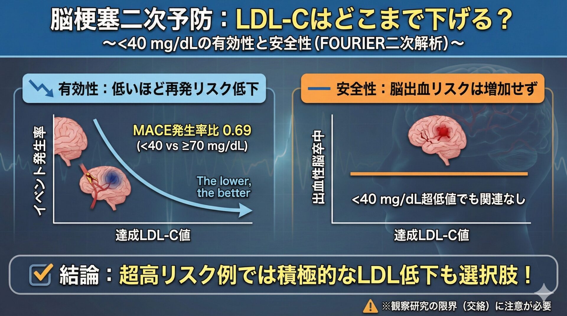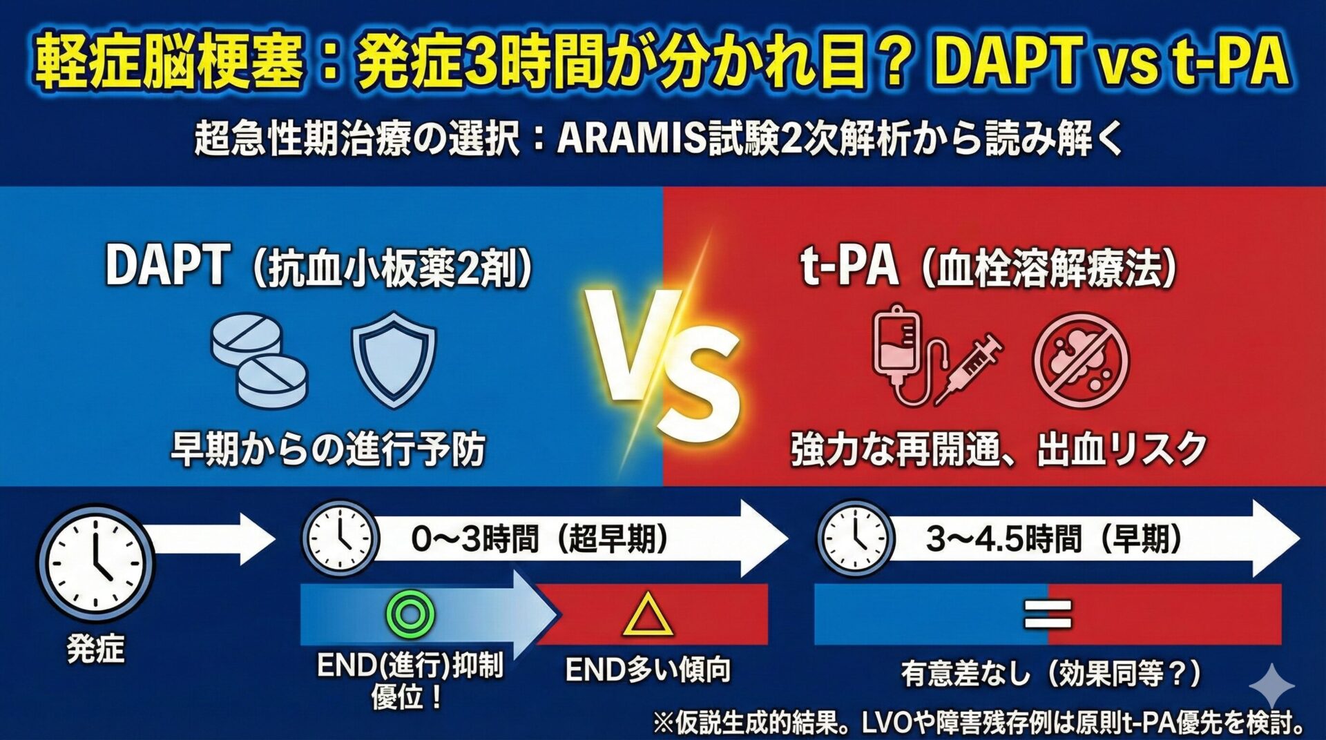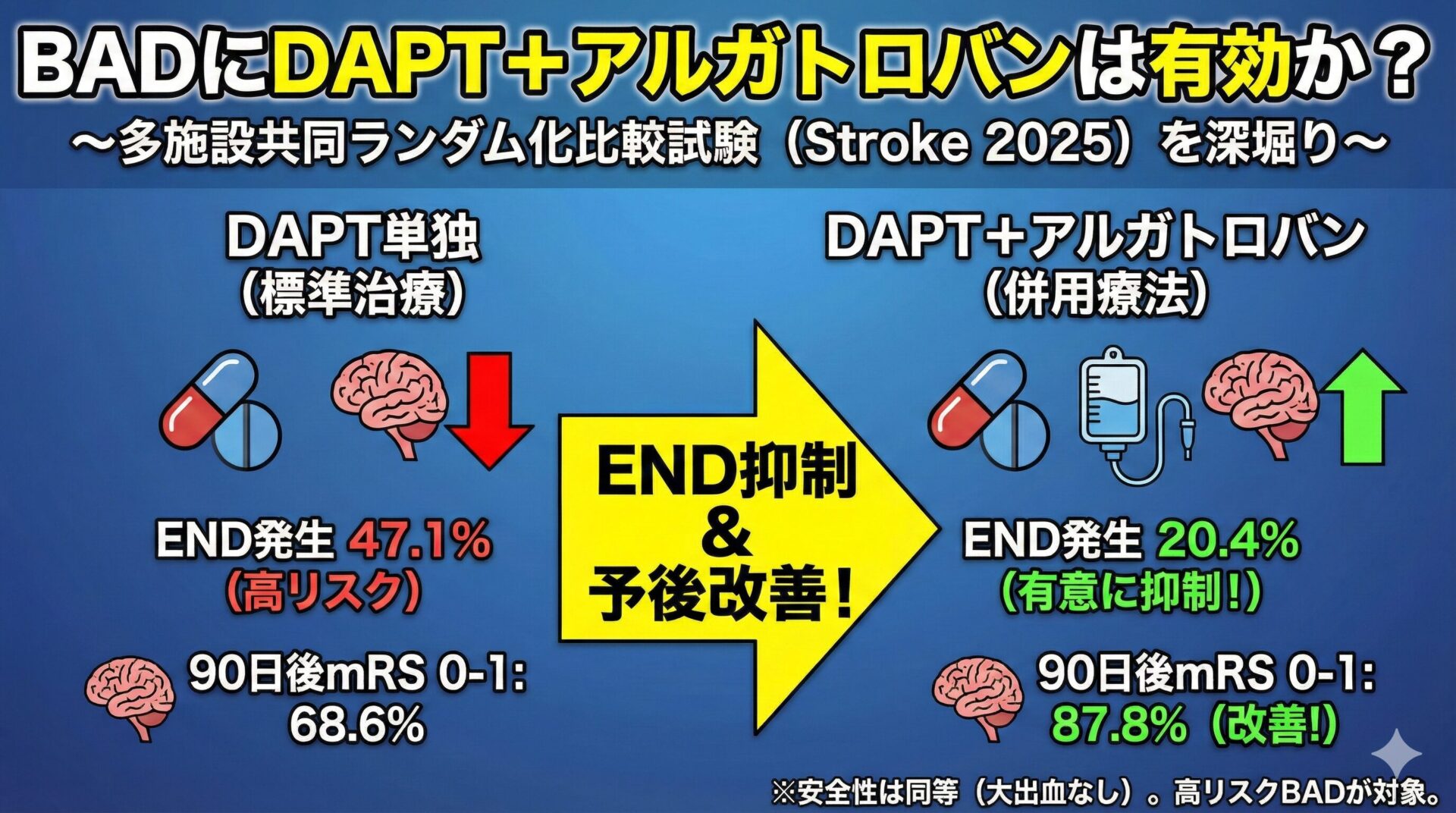 CATEGORY 脳卒中 "感度・特異度"だけで満足していませんか?〜HINTS試験に学ぶ、診断研究の正しい読み方〜 2026.02.18 脳卒中 Neurolog管理人 にゅ〜ろろぐ|脳の羅針盤 塞栓源不明脳塞栓症(ESUS)は本当に心原性脳塞栓症(CE)より予後良好なのか? 〜BMC Neurology 2025の前向きコホートの結果から考える〜 2025.12.08 脳卒中 Neurolog管理人 にゅ〜ろろぐ|脳の羅針盤 無症候性頸動脈狭窄症:強力な内科的治療にCAS/CEAを上乗せする価値はあるか?〜CREST-2の結果から〜 2025.12.01 脳卒中 Neurolog管理人 にゅ〜ろろぐ|脳の羅針盤 脳梗塞の二次予防でLDL-Cはどこまで下げる? 〜<40 mg/dLの有効性と安全性〜 2025.11.17 脳卒中 Neurolog管理人 にゅ〜ろろぐ|脳の羅針盤 カナグリフロジンは選択的SGLT2阻害薬より脳卒中リスクが高い? 2025.11.13 脳卒中 Neurolog管理人 にゅ〜ろろぐ|脳の羅針盤 軽症脳梗塞の超急性期治療:DAPT vs t-PA、発症から治療開始までの時間は予後にどう影響するか? 2025.11.04 脳卒中 Neurolog管理人 にゅ〜ろろぐ|脳の羅針盤 脳静脈洞血栓症の抗凝固療法:DOACはワルファリンの代替となるか? 2025.10.24 脳卒中 Neurolog管理人 にゅ〜ろろぐ|脳の羅針盤 BADにDAPT+アルガトロバンは有効か? 〜多施設共同ランダム化比較試験(Stroke 2025)を深堀り〜 2025.10.22 脳卒中 Neurolog管理人 にゅ〜ろろぐ|脳の羅針盤 心房細動+動脈硬化を合併した脳梗塞の最適な抗血栓療法は?〜ATIS-NVAF試験が示した「併用の純利益なし」〜 2025.10.12 脳卒中 Neurolog管理人 にゅ〜ろろぐ|脳の羅針盤 多発性硬化症(MS)患者は脳卒中リスクが高いのか?〜2025年の人口ベース大規模コホートを実践的に読み解く〜 2025.10.05 免疫 Neurolog管理人 にゅ〜ろろぐ|脳の羅針盤 1…2