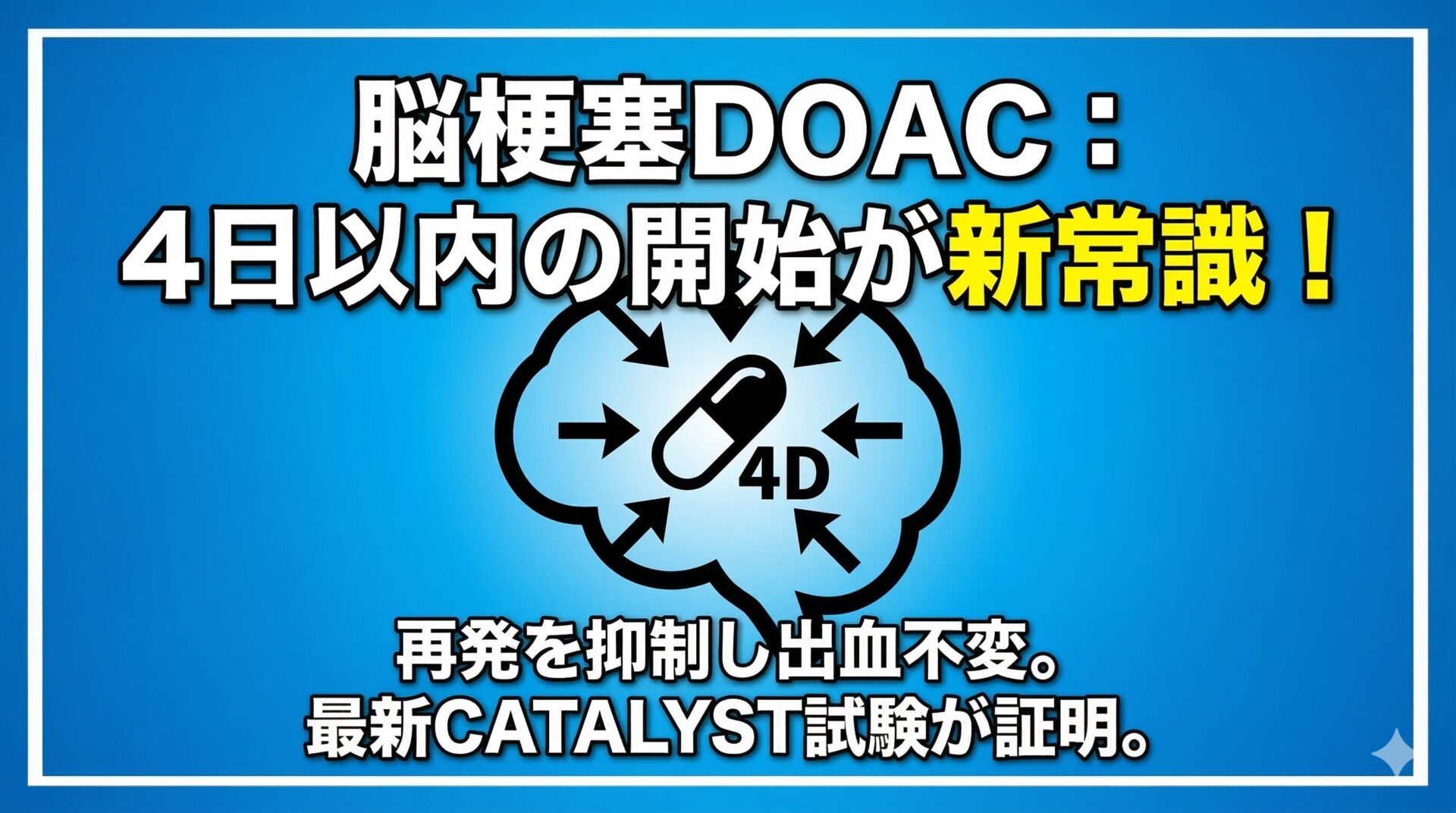 まだ見つかっていないだけのAFだろうと考えて抗凝固療法を検討したくもなりますが、NAVIGATE ESUSやRE-SPECT ESUSといった大規模臨床試験では、DOAC(直接作用型経口抗凝固薬)の優越性は示されませんでした。