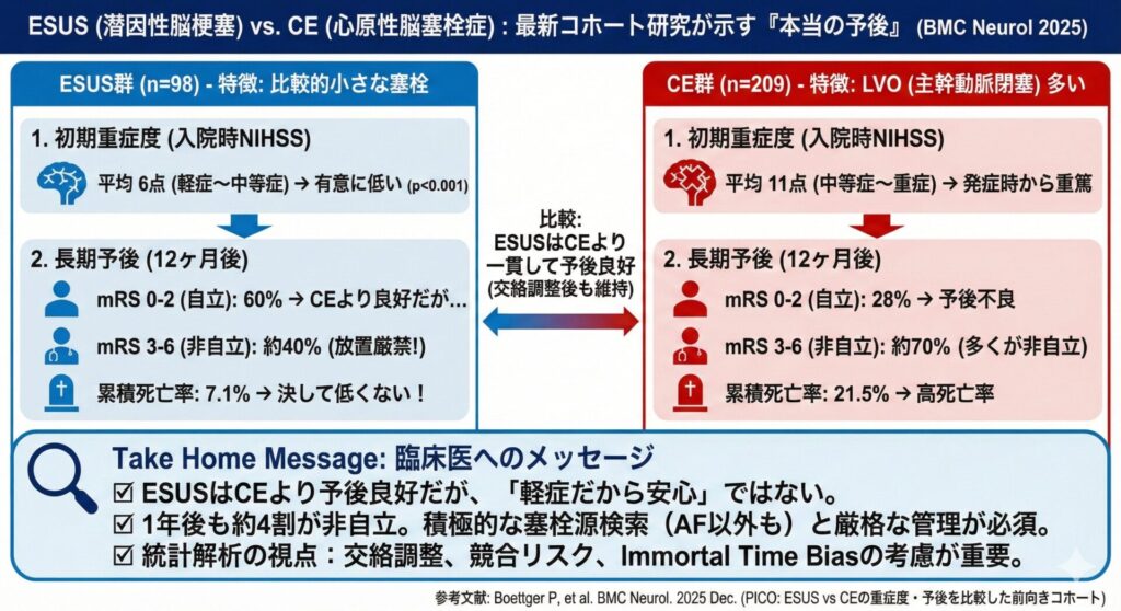 塞栓源不明脳塞栓症(ESUS)は本当に心原性脳塞栓症(CE)より予後良好なのか? 〜BMC Neurology 2025の前向きコホートの結果から考える〜