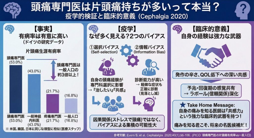 頭痛専門医は片頭痛持ちが多い説は本当か? 〜疫学データと選択バイアスから考える〜