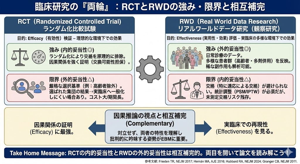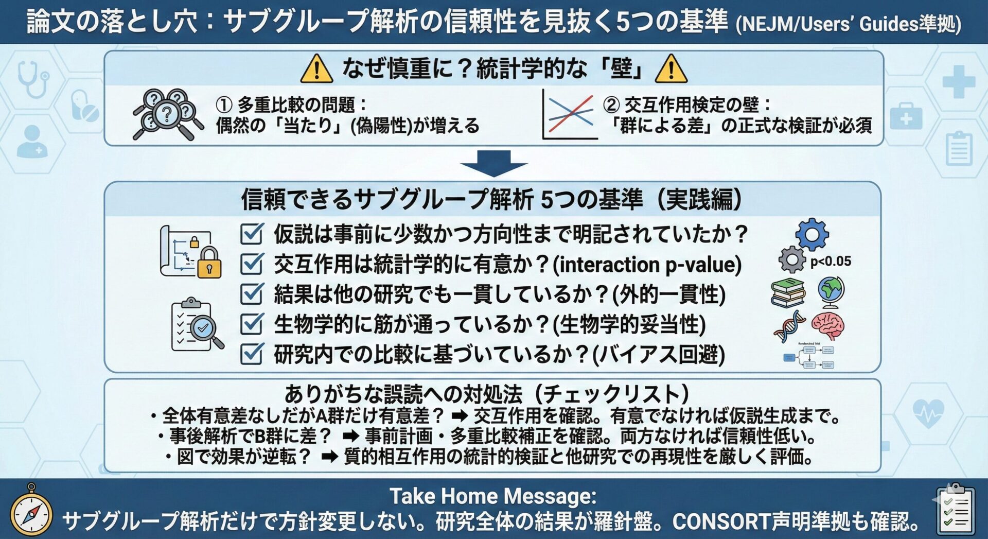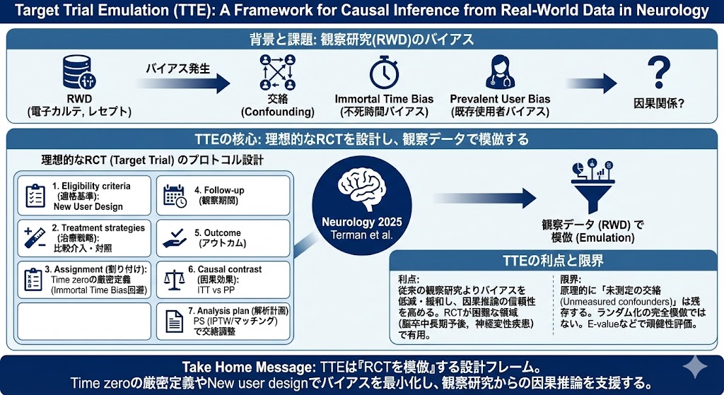 - 論文を読む際は、ハザード比やp値だけでなく、time-zeroの整合性と、時間依存性Coxやランドマーク法などの適切な統計手法が用いられているかを確認する。