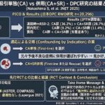 今回のDPC研究「CA+SR vs CA(CA優位?)」という結果は、これらのRCTとは異なる方向性を示しています。