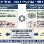 RCTはEfficacyの検証に、RWD研究はEffectivenessの評価に、それぞれ適したデザインと言えます。