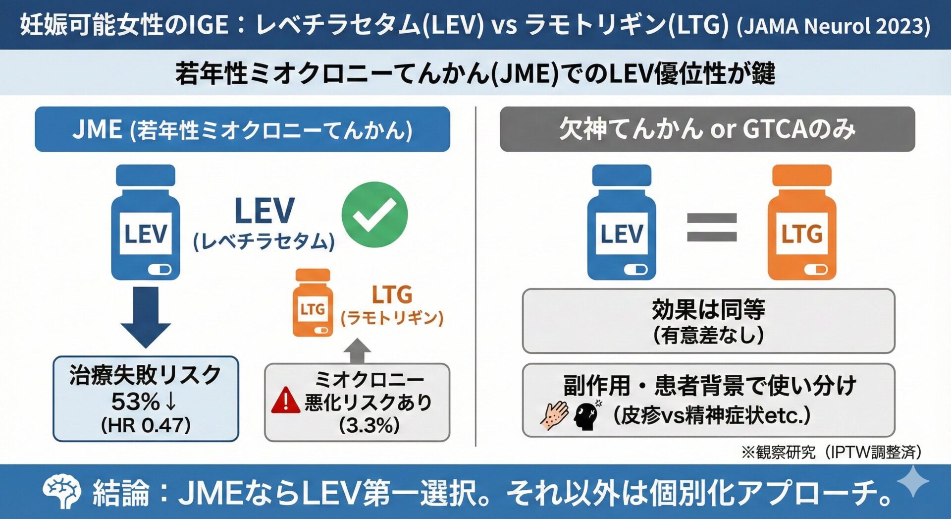 ただし、これはあくまで後ろ向き観察研究の結果です。前述の通り、重症度や発作持続時間などの「未測定交絡」が残存している可能性は否定できません。「LCMがLEVより明確に優れている」と断定するには、今後の前向き研究(理想的にはRCT)による検証が必要です。